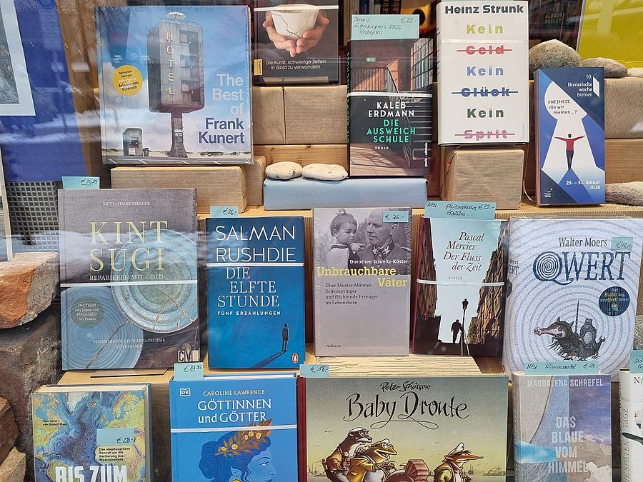 ![]() Im Januar 2026 in einem Schaufenster der Bremer Humboldt-Buchhandlung - gleich neben Salman Rushdie! ©dsk |